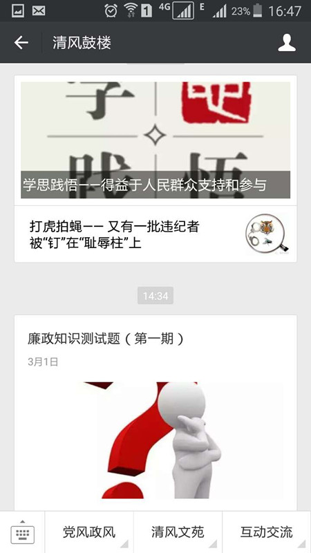 图2:鼓楼区纪委“清风鼓楼”微信平台定期发布廉政小知识