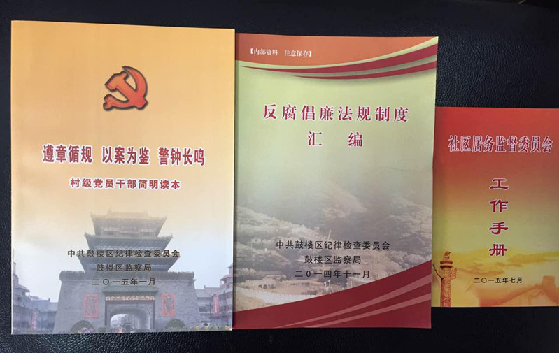 图4:鼓楼区纪委编纂印刷《基层干部违纪案例选编》等廉政书籍