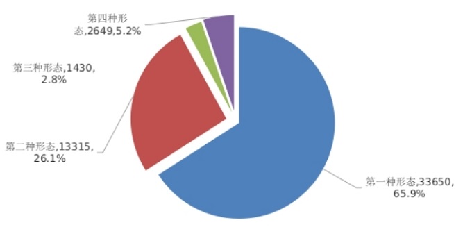 2022年上半年,全省纪检监察机关共运用“四种形态”批评教育和处理51044人次。其中,运用第一种形态批评教育帮助33650人次,占总人次的65.9%;运用第二种形态处理13315人次,占26.1%;运用第三种形态处理1430人次,占2.8%;运用第四种形态处理2649人次,占5.2%。