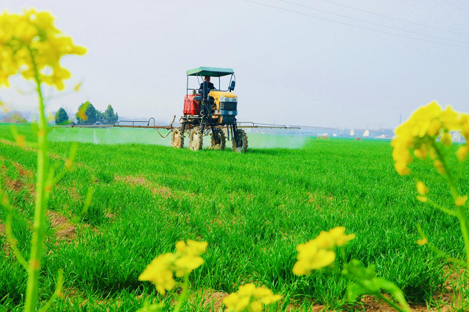 春分时节,气温回升,春管、春耕进入繁忙阶段,农民们根据小麦的长势,适时进行麦田管理。(柘城县纪委监委 张书珲 摄)