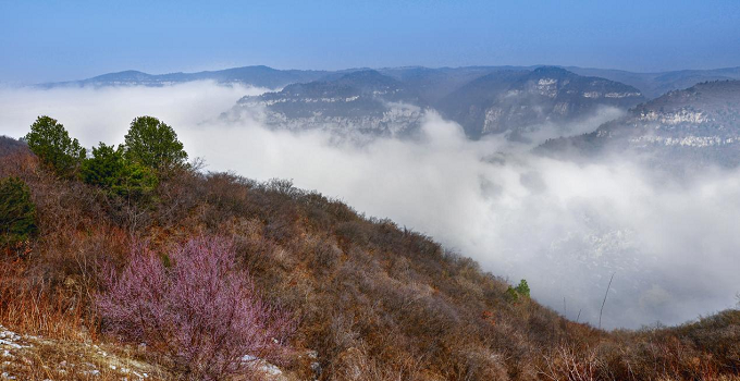 东风含笑、阳光柔暖,梅薰柳染、草长莺飞。一场春雨让太行山下的博爱县春意盎然,青天河靳家岭再现云海仙境,到处是野桃花、野杏花、连翘花,给南太行增加了一道靓丽风景线。(博爱县纪委监委 郑海斌 摄)