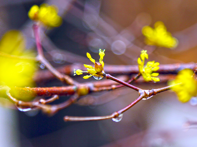 春分时节,是山茱萸的花季。山茱萸的花朵是极致的金黄,仿佛一朵朵金色的小伞,明媚、光亮,让整个春天更加多姿多彩。(卢氏县纪委监委 薛向浯 摄)