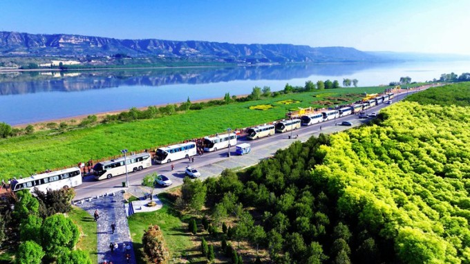 人间最美四月天,三门峡市大王镇冯佐渡口,河水如深蓝色的丝带飘向远方,树木苍翠如屏,新绿赫然如缎,研学的师生纷沓而至,游人如织,蓝天白云触手可及,乡村游让昔日的渡口人成了经济发展的新能人。(灵宝市纪委监委供 李强 摄)