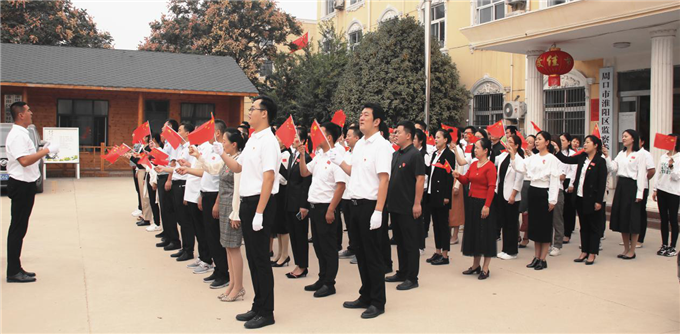 “在国庆节来临之际举行升国旗仪式,进一步激励引导了全体干部坚定政治信仰、牢记初心使命、勇于担当作为,激发广大党员干部的爱国情怀、昂扬斗志和奋斗精神。”周口市淮阳区纪委监委相关负责人介绍说。(张金磊)
