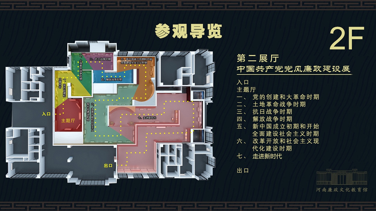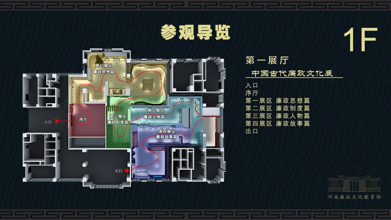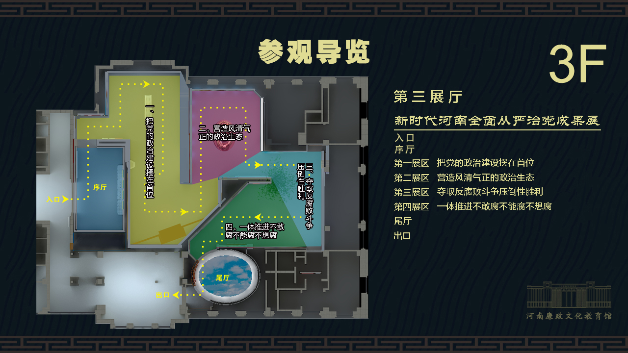 本展馆建筑面积8148㎡,布展面积6100㎡,内设中国古代廉政文化展、中国共产党党风廉政建设展、新时代河南全面从严治党成果展三个主题展厅和中国共产党人的精神谱系展、中国共产党人的家风档案图片展两个专题展区,每个主题展厅面积约为1630㎡,每个专题展区面积约为270㎡。布展内容以习近平新时代中国特色社会主义思想为指导,旨在使党员、干部通过参观,从五千年中华文明中汲取为政以廉的文化滋养,从中国共产党人跳出历史周期率的思考和实践中感悟党持之以恒正风肃纪反腐的坚强决心、鲜明态度,从中原大地全面从严治党的实践成果中感受严的氛围、汲取严的力量,永葆共产党人清正廉洁的政治本色。