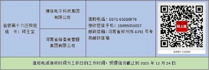 据悉,各省委巡视组将在被巡视单位工作2个月左右,其间设立专门值班电话、接收短信手机、邮政信箱、“码上巡”等信访举报方式,主要受理反映被巡视党组织领导班子及其成员、下一级党组织主要负责人和重点岗位人员问题的来信来电来访,重点是关于违反政治纪律、组织纪律、廉洁纪律、群众纪律、工作纪律和生活纪律等方面的举报和反映。省委巡视组受理信访时间截止到2025年12月24日。