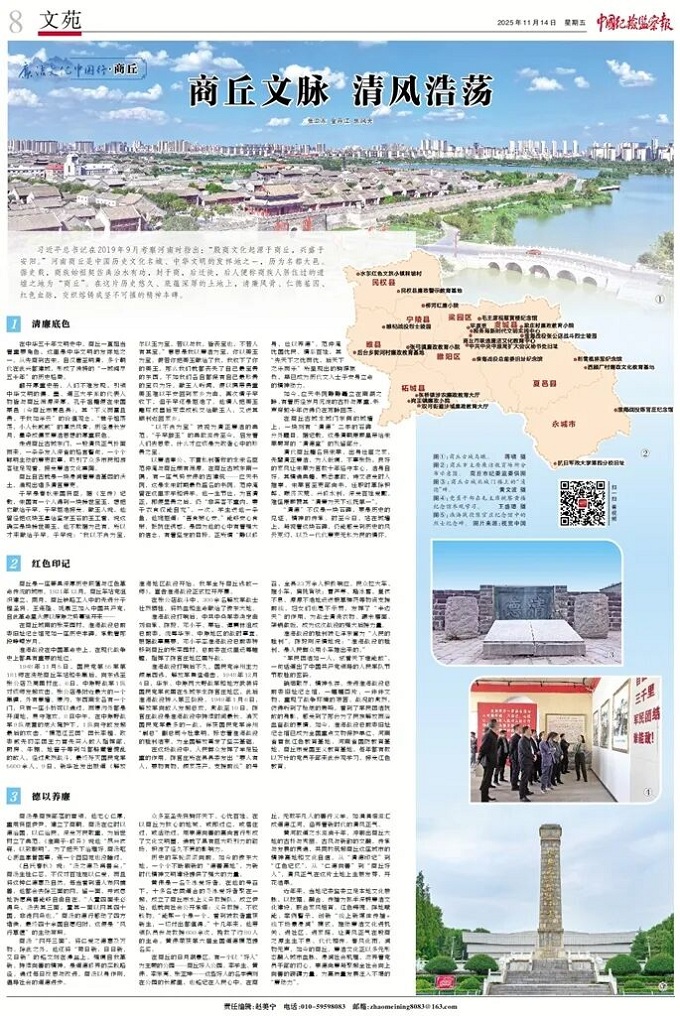 黄河故道之水流淌千年,冲刷出商丘大地的古朴与秀丽。古风与新韵的交融,传承与发展的贯通,共同构筑起商丘这座城市的精神高地和文化自信。从“清德印记”到“红色记忆”,从“仁德向善”到“商丘好人”,清风正气在这片土地上生根发芽,开花结果。