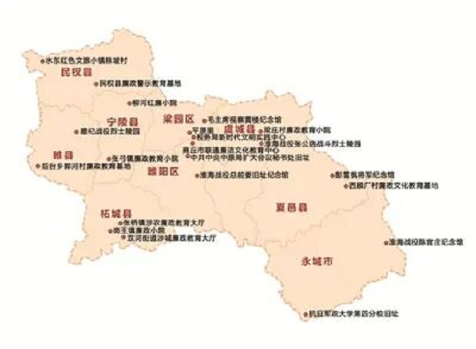 商丘市主要廉洁教育场所分布示意图。商丘市纪委监委供图