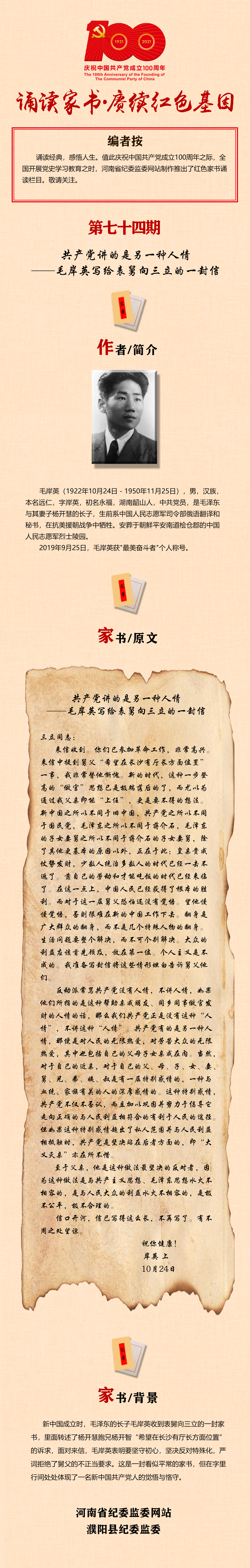 诵读家书·赓续红色基因 第七十四期 | 毛岸英写给表舅向三立的一封信