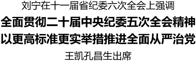 1月19日,十一届省纪委六次全会在郑州召开。省委书记刘宁出席并讲话,强调要深入学习党的二十大和二十届历次全会精神,认真贯彻习近平总书记在二十届中央纪委五次全会上的重要讲话精神,全面贯彻习近平总书记在我省考察时重要讲话精神和关于河南工作的重要论述,以更高标准、更实举措推进全面从严治党,为实现“十五五”时期目标任务、奋力谱写中原大地推进中国式现代化新篇章提供坚强保障。省长王凯、省政协主席孔昌生出席。中央纪委国家监委有关同志到会指导。