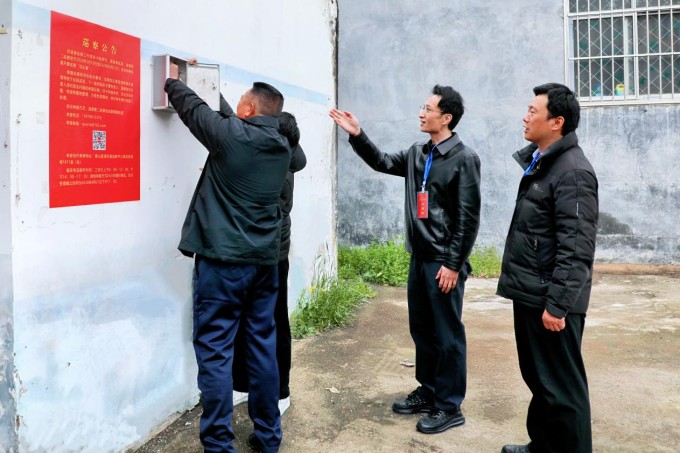 确山县纪委监委深化纪巡联动监督机制,在对村巡察中统筹纪检监察与巡察力量,广泛收集基层微腐败和作风问题线索,推动监督下沉、落地见效,打通全面从严治党最后一公里。图为确山县纪巡联动工作组在相关点位张贴巡察公告、安装信访举报箱,畅通渠道、收集民意。(确山县纪委监委 王敬一 摄)