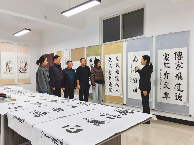 汝阳县纪委监委通过书、画、展、演等多种方式,让廉洁文化有声有色、可感可触,不断增强廉洁文化的影响力、感染力和渗透力。图为汝阳县纪委监委组织党员干部在“大道至简 墨香润廉”书画展厅欣赏作品。(汝阳县纪委监委 张笑颜 摄)