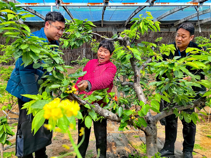 灵宝市纪委监委立足“奔着问题去、盯着问题改”,牢固树立监督“一盘棋”理念,持续强化纪检监察监督与巡察监督有机贯通融合,着力增强监督的针对性和有效性,助推基层治理提质增效。图为灵宝市联合督查组在川口镇东庄里村走访早熟大棚樱桃果农。(灵宝市纪委监委 杨蓓蓓 摄)