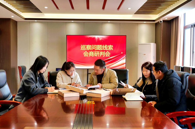 郑州市上街区委巡察机构加强纪巡联动,探索建立“一份监督清单统揽重点、每周一次联席会议互通线索、一套问题台账联动监督”的“三个一”协同机制,形成了纪检监察监督、巡视巡察监督衔接顺畅、配合有效的工作格局。图为上街区巡察机构工作人员召开巡察组务会集体研究,对问题线索的事例数据、支撑材料进行审核把关,为依规依纪依法移交、处置夯实基础。(郑州市上街区纪委监委 韦耀星 摄)