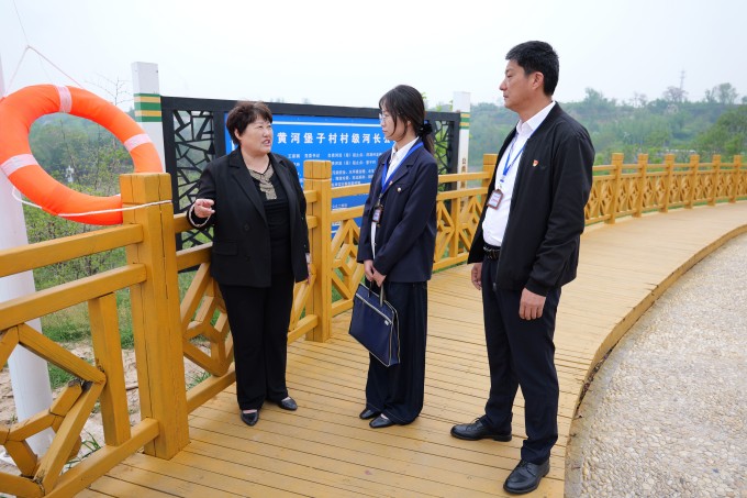灵宝市纪委监委将沿黄生态保护、矿山治理、支流整治等纳入监督重点,逐项明确责任、细化措施,确保党中央决策部署不折不扣落实到位。图为该市纪检监察干部在东古驿黄河段走访了解相关情况。(灵宝市纪委监委 杨蓓蓓 摄)