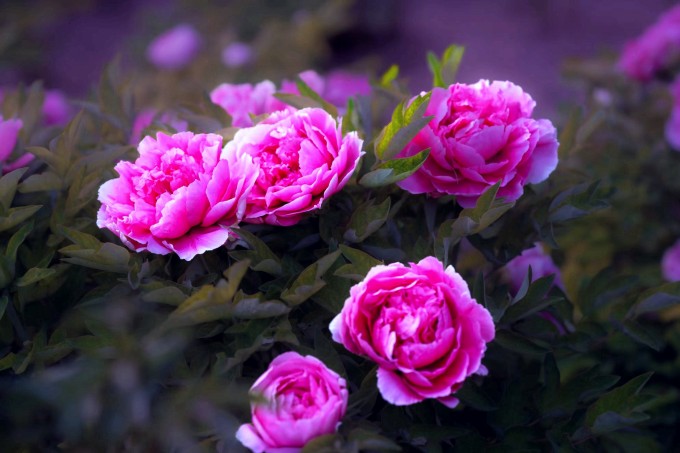 朝霞中,灵宝市函谷关景区大道院里的牡丹盛开,粉色的花朵袅袅冉冉,在晨光中尽情地舒展。(灵宝市纪委监委 张建国 摄)