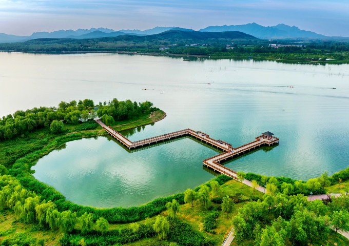 谷雨时节,万物竟发。龙泉湖畔山藏秀色,一湖碧水映长天,曲栈凌波入画间,风拂柳丝柔,山衔远黛青,绘就一幅醉人的湖山盛景。(舞钢市纪委监委 李贵生 摄)