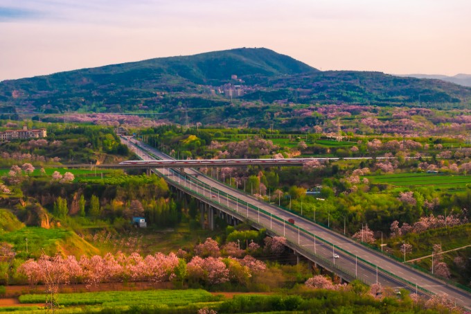 高铁在花海间飞驰,公路上车流往来不息。路侧繁花似锦,绿意层层铺展。春日的活力沿着交通动脉,向更远处蔓延开去。(郑州市上街区纪委监委供 于海波 摄)
