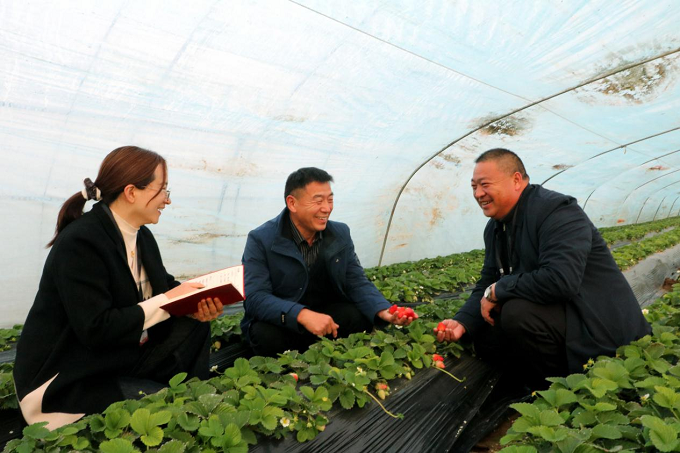 鹿邑县纪委监委围绕惠民惠农政策落地等开展监督检查,一线听取民情民意,用心用情用力解决群众反映强烈的突出问题。图为该县纪检监察干部到太清宫镇草莓种植园走访了解惠农政策落实情况。(鹿邑县纪委监委 李梦瑶 摄)