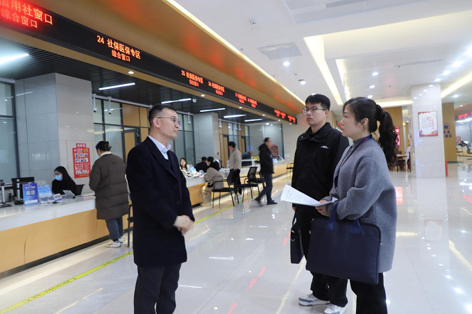 夏邑县纪委监委聚焦群众反映强烈问题,以明察暗访、体验走访、设立举报箱等方式,重点收集窗口单位在服务态度、办理时限、群众满意度等方面的问题线索。图为该县纪检监察干部在县政务服务中心了解相关情况。(夏邑县纪委监委 吴卫 摄)