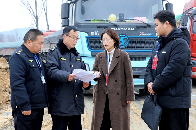 确山县纪委监委坚持在一线淬炼纪检监察铁军,搭建实战实训平台,推动派驻干部下沉执法处置现场,在监督检查中磨砺履职担当能力。图为该县派驻县交通运输局纪检监察组干部在确山县交通综合执法大队处置中心,与执法人员一同核查货车司机投诉办理情况。(确山县纪委监委 王敬一 摄)