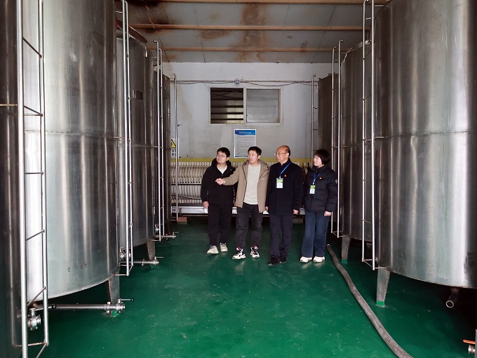 邓州市纪委监委以实战实训赋能监督执纪,坚持在一线察实情、练本领,以实践促提升,不断增强监督执纪执法专业能力。图为该市纪委监委驻市农业农村局纪检监察组在酒业公司红谷小米分装车间调研黄酒生产情况。(邓州市纪委监委 张勇 摄)