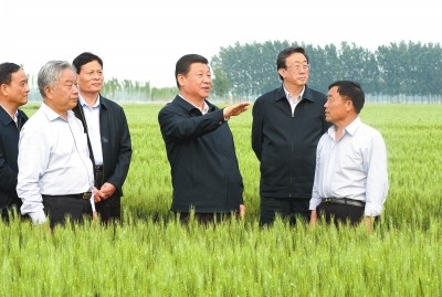 2014年5月9日,在尉氏县张市镇高标准粮田,习近平总书记走进田间,仔细查看小麦长势。